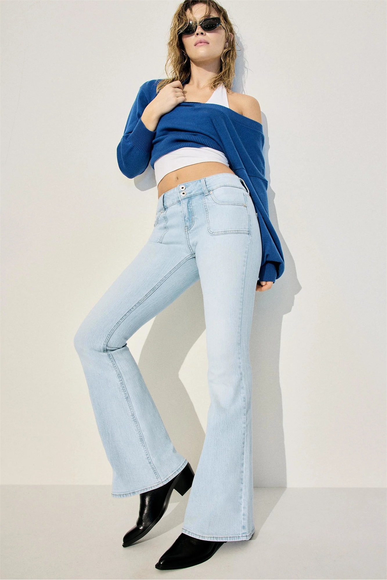 Джинсы с низкой посадкой и накладными карманами