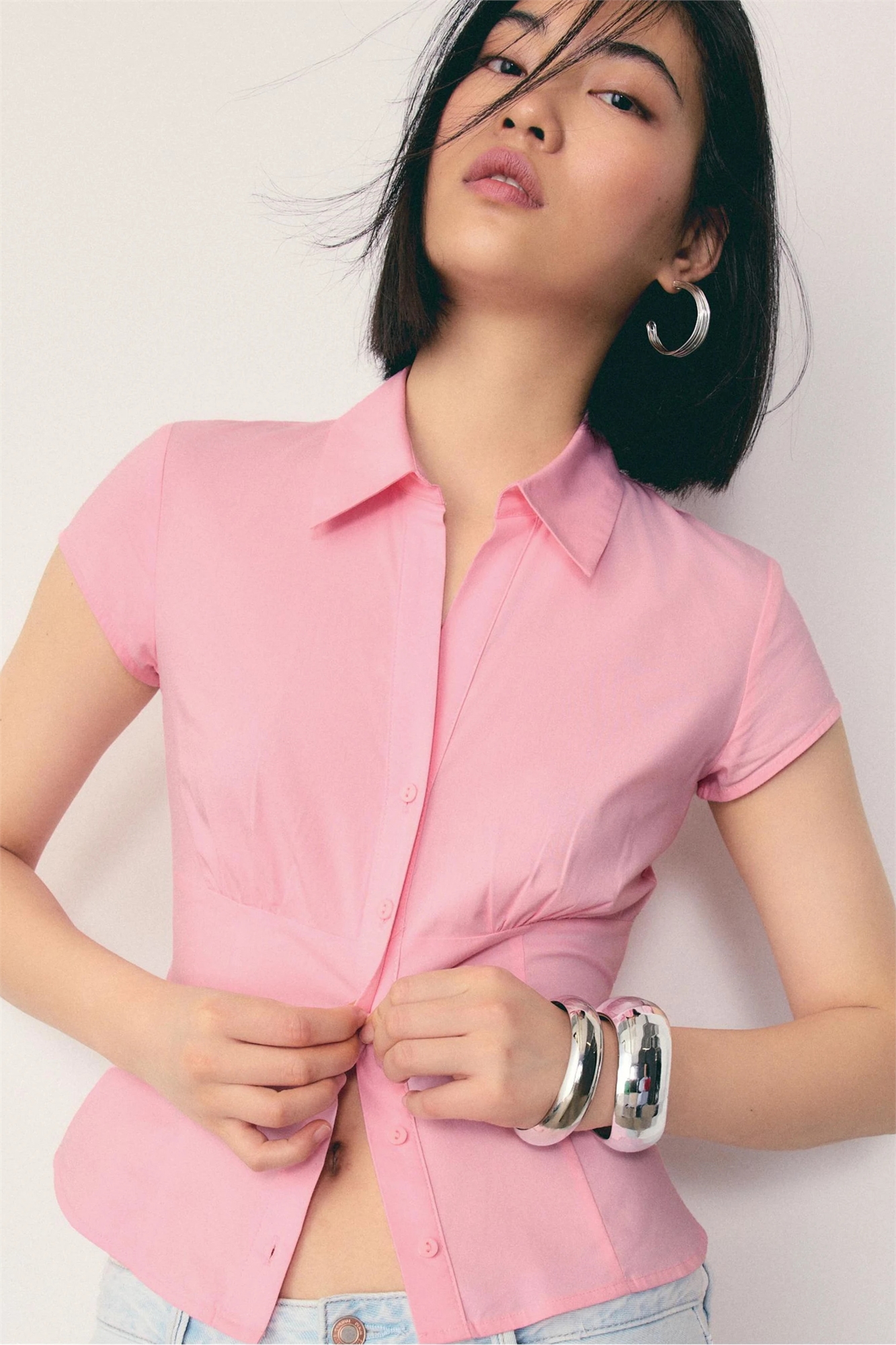 Рубашка с короткими рукавами и швом под грудью
