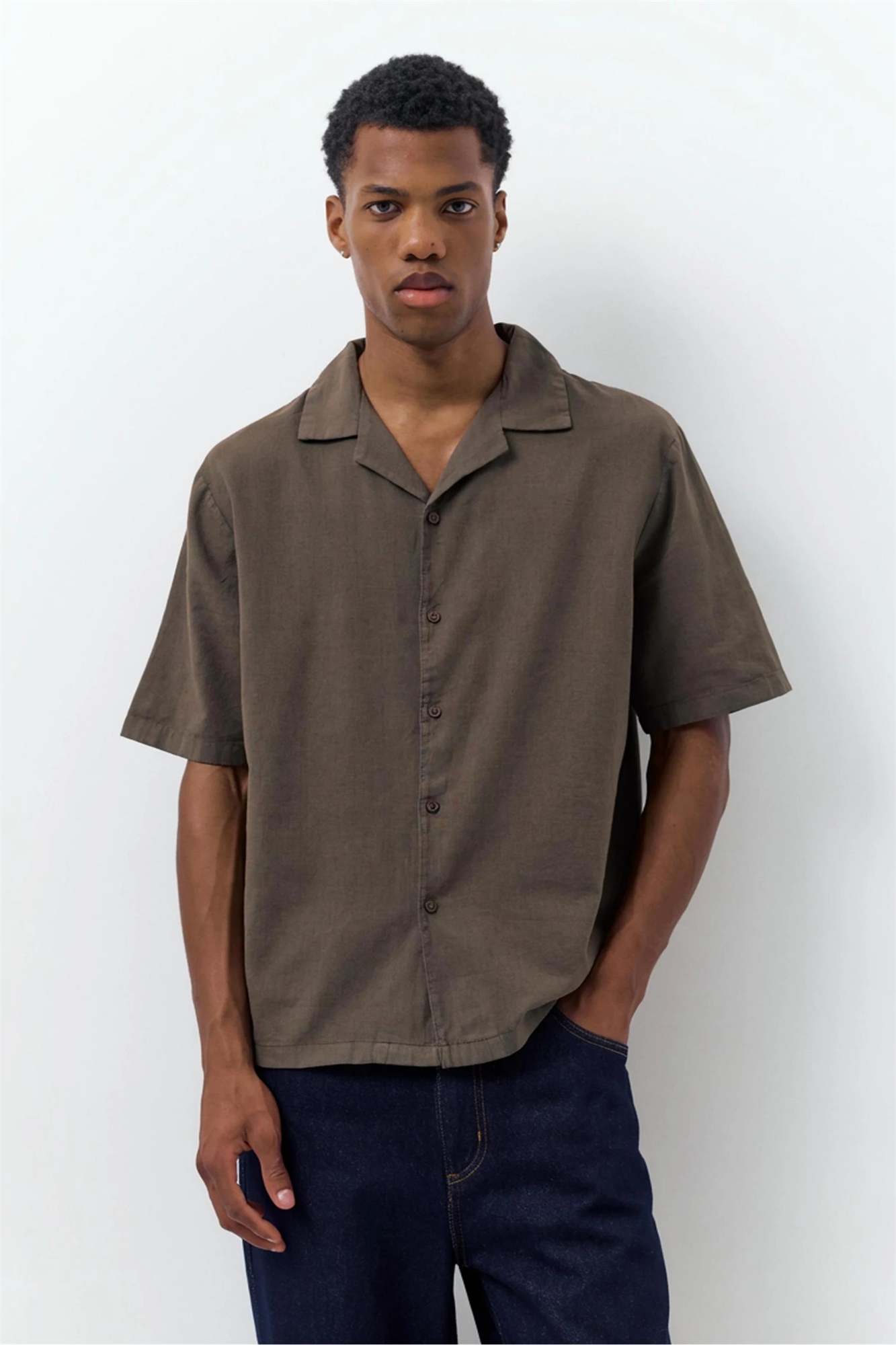 Рубашка с короткими рукавами из смесовой ткани с льном