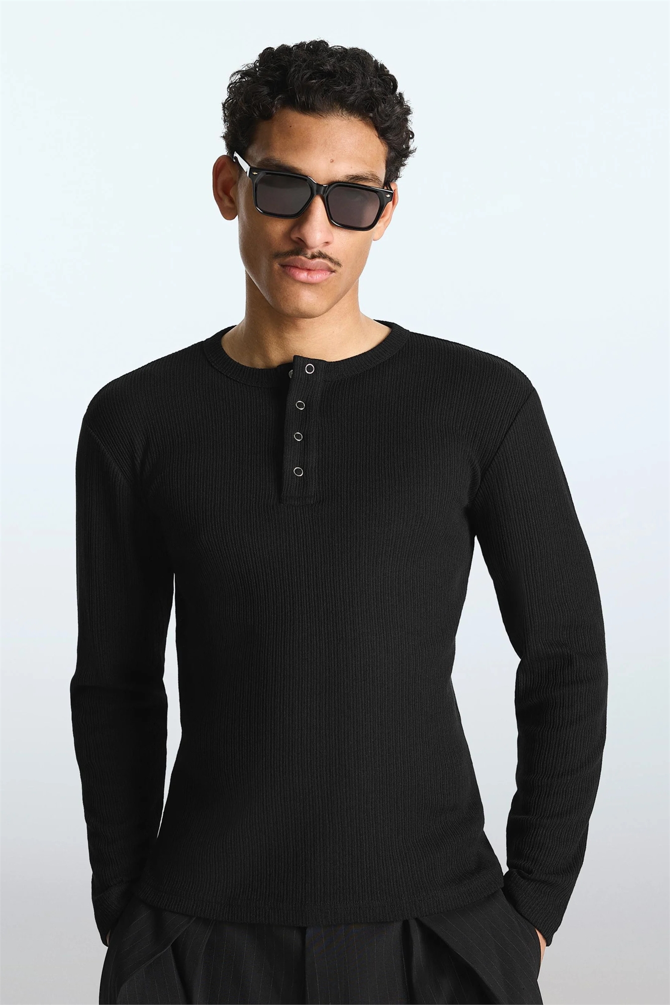 Футболка с длинными рукавами, облегающего кроя и воротником-хенли