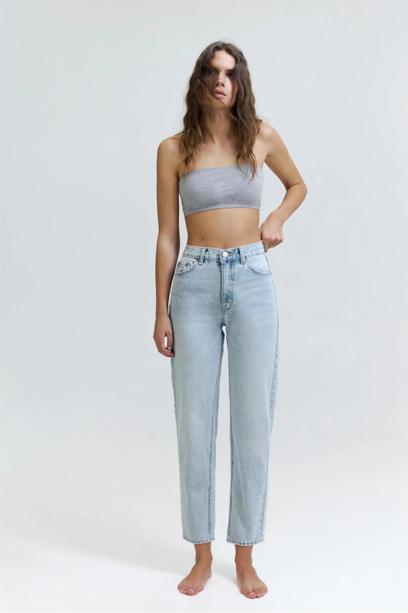 Джинсовая ткань без эластана: светло-голубой оттенок Основной материал: 100% хлопок.