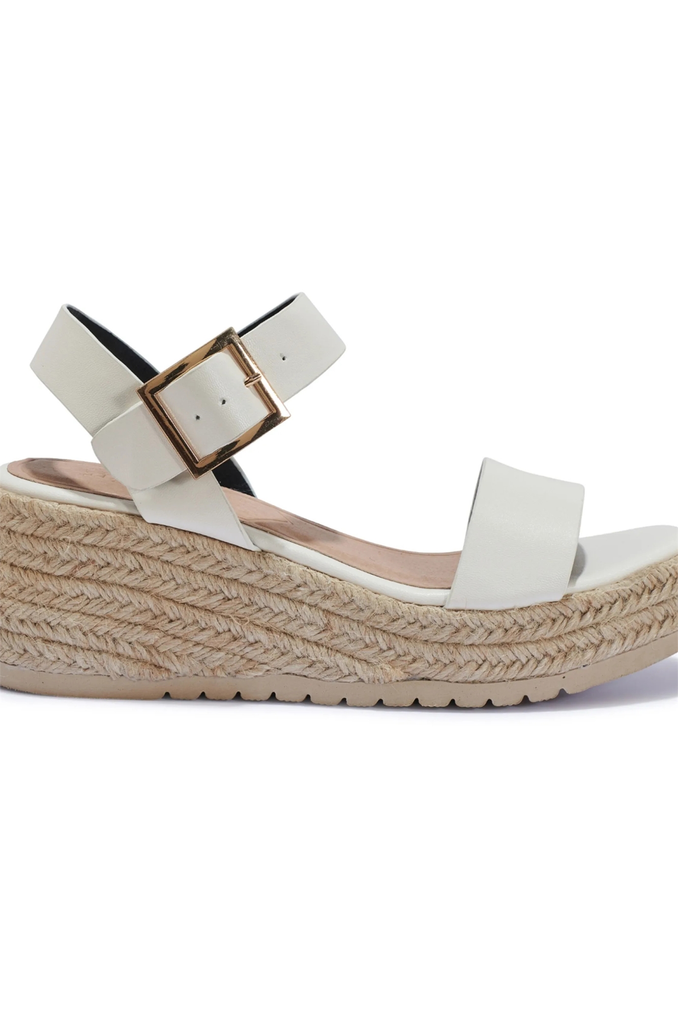 Стильные и удобные сандалии на танкетке с открытым носком и ремешком с пряжкой