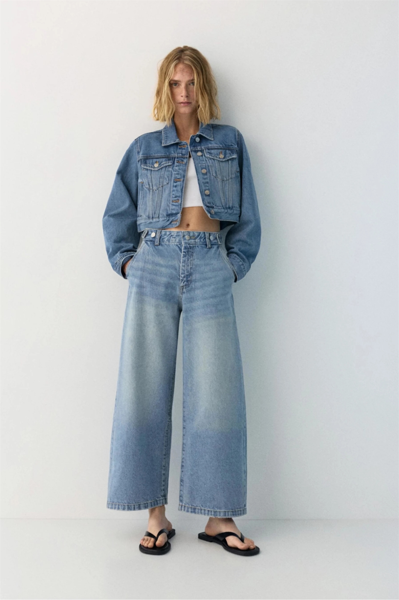 Джинсовая ткань без эластана: светло-голубой оттенок Основной материал: 100% хлопок.
