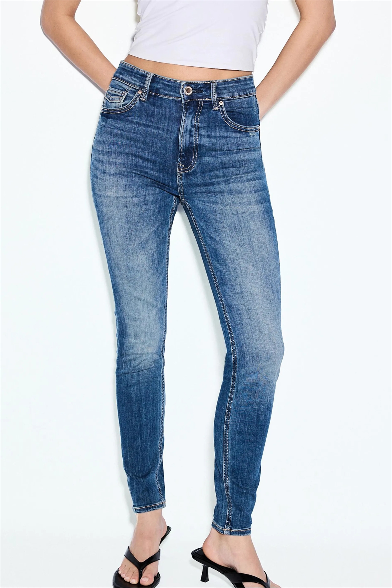 Джинсовая ткань с эластаном: оттенок средне-синий. Основной состав: 90% хлопок, 8% эластомультиэстер, 2% эластан.