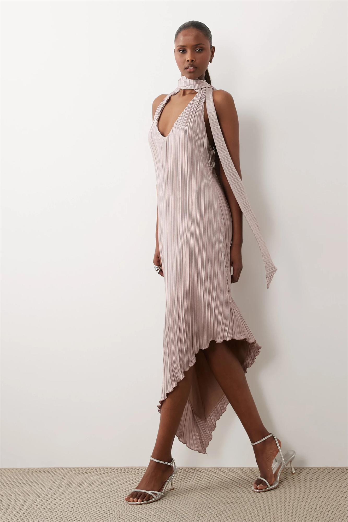 Мини-платье с плиссированным шарфом