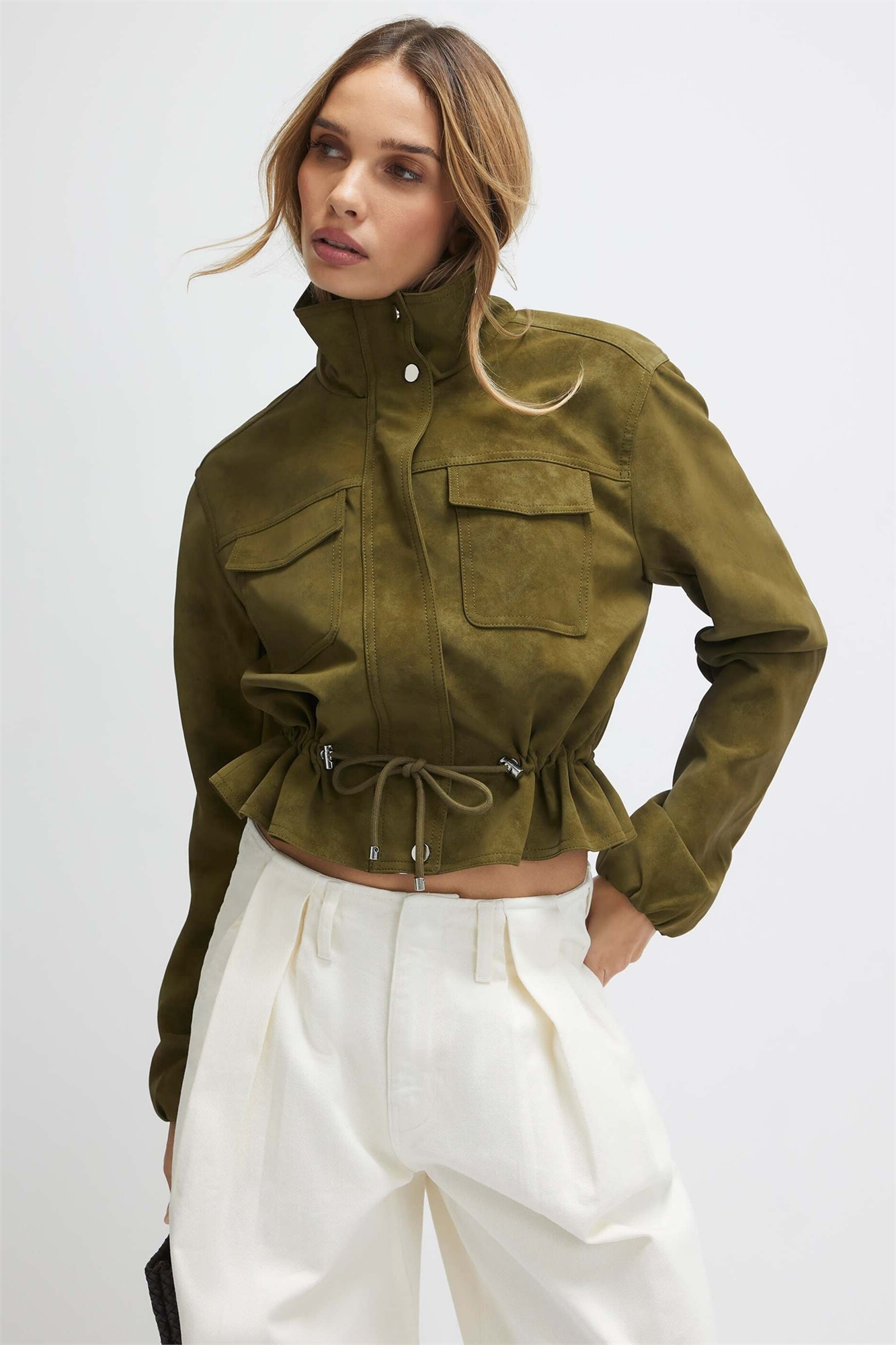 Куртка с воротником-воронкой и шнурком