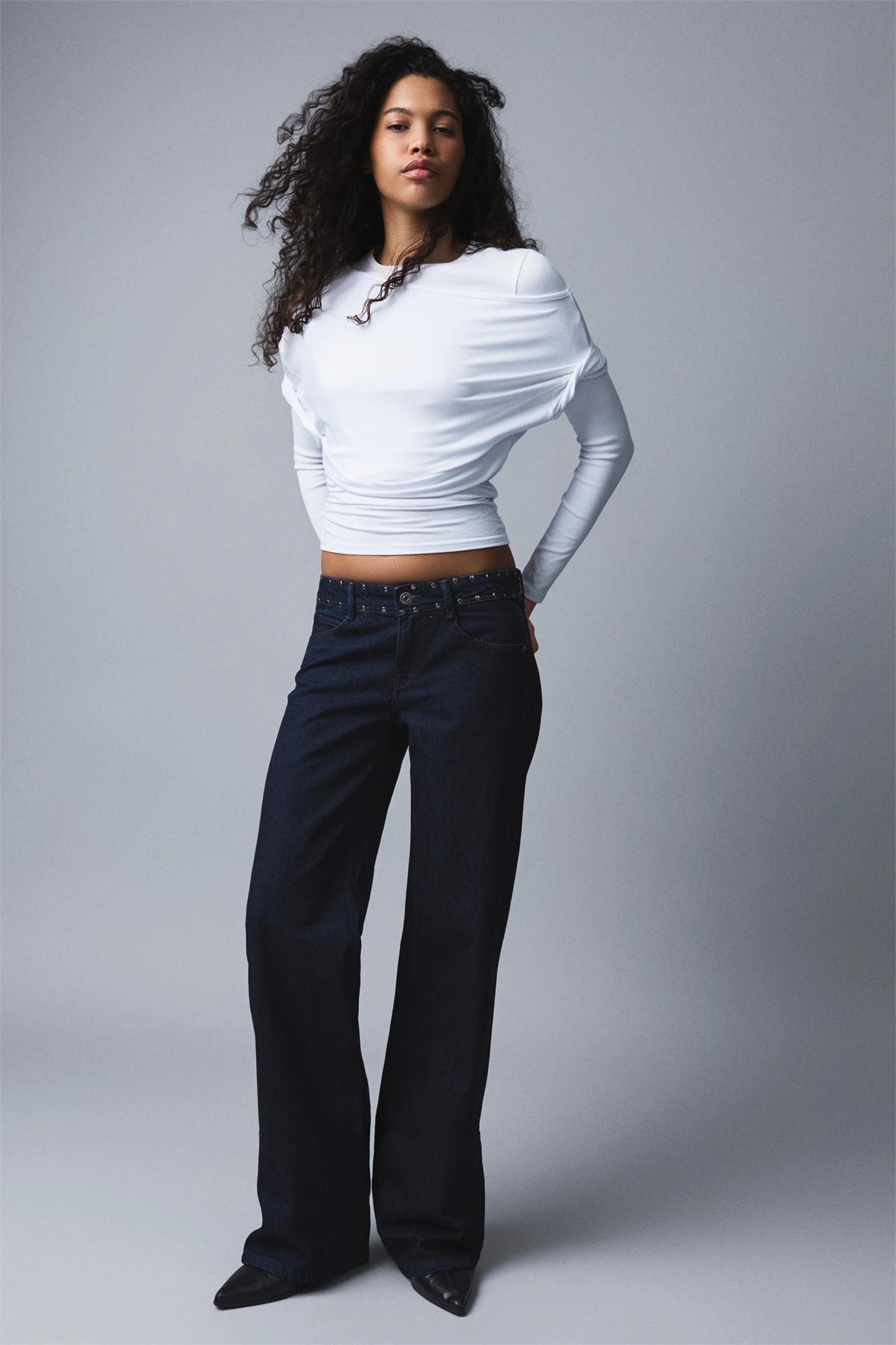 Джинсы свободного кроя с заклепками и заниженной талией