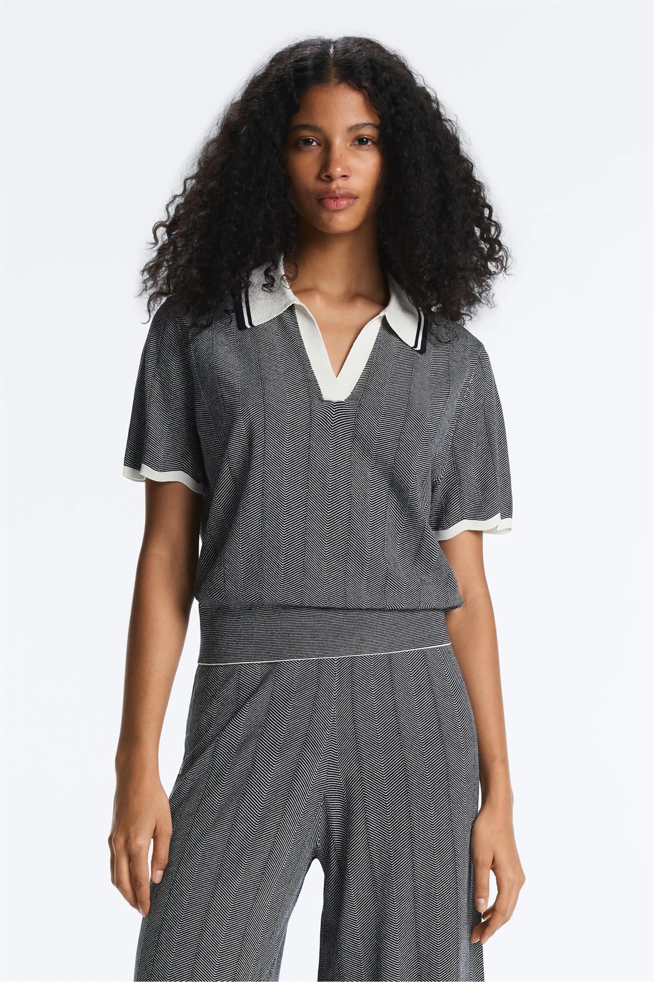 Трикотажная рубашка-поло с коротким рукавом и узором «елочка»