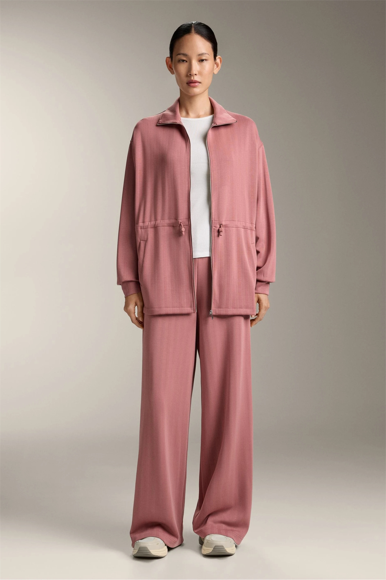 Брюки с высокой талией, в полоску и с фактурной поверхностью