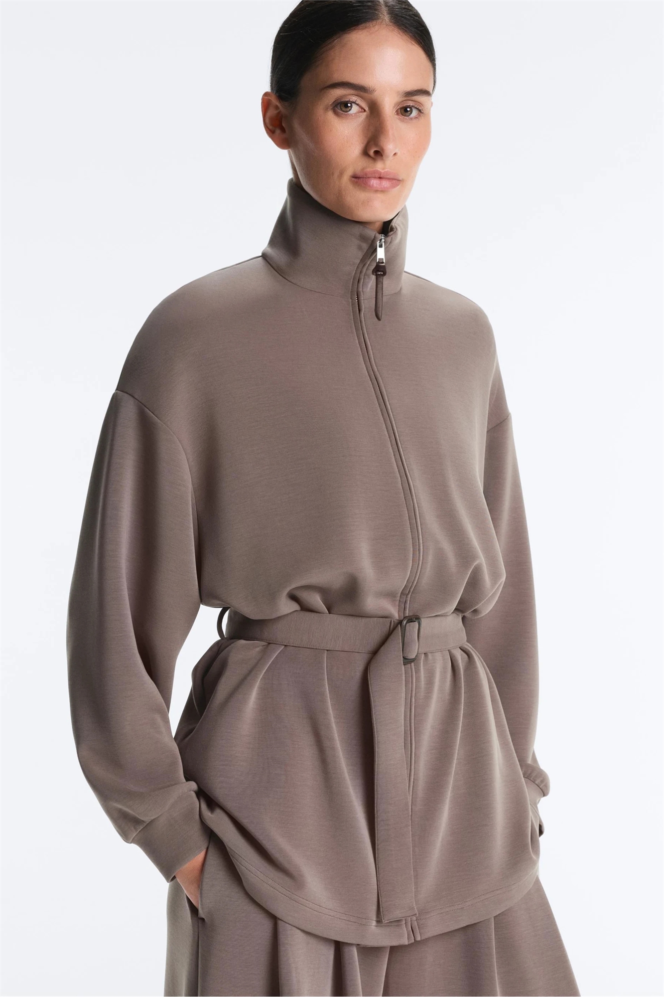 Длинный жакет-корсет с поясом из модала с мягкой текстурой
