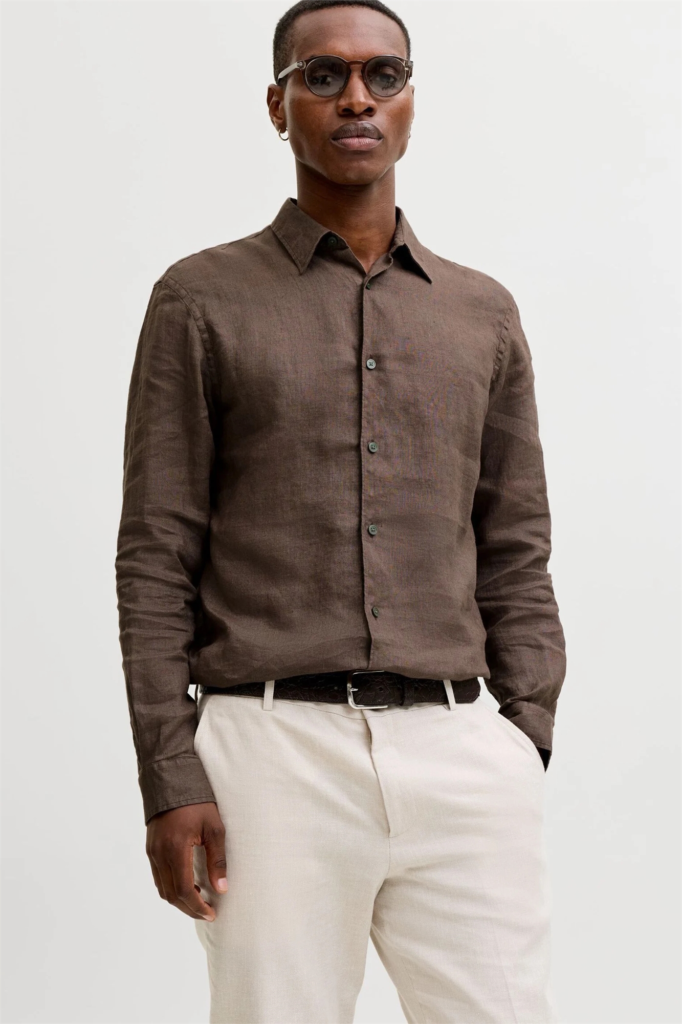 Льняная рубашка с длинными рукавами
