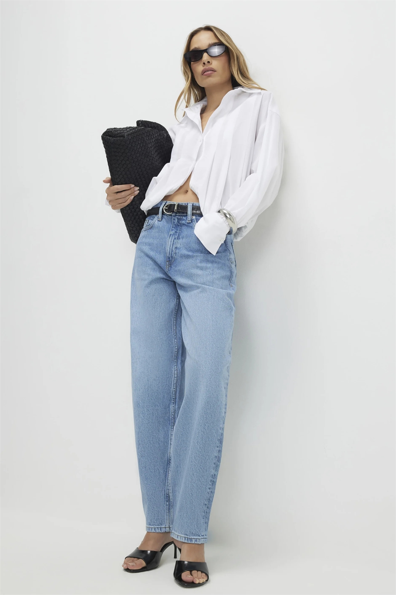 Джинсы средней посадки с широкими брючинами